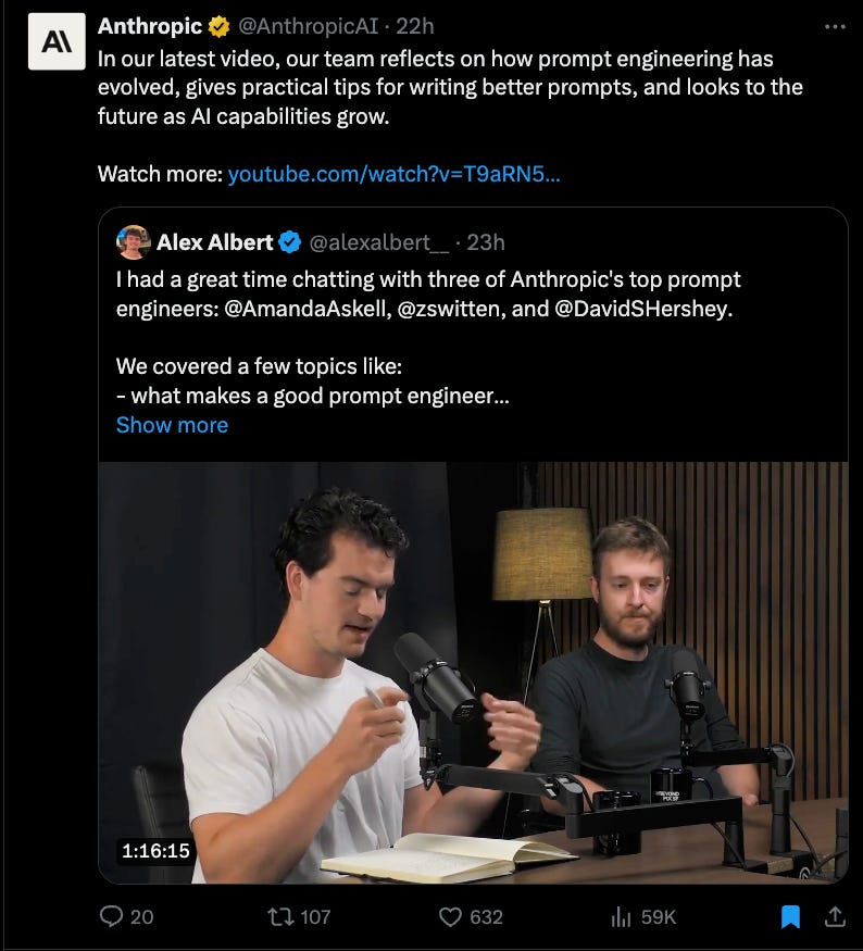 Anthropic (@AnthropicAI) releases a new video on prompt engineering. The team discusses its evolution, offers practical tips for writing better prompts, and explores future possibilities as AI capabilities grow. Watch the video