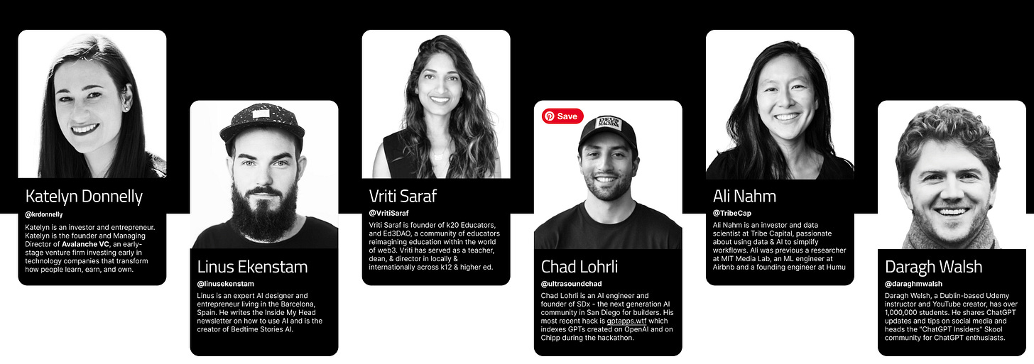 It was no easy task to pick among this fascinating selection of GPTs. That’s why we brought in leading investors, educators, builders, and creators to help us pick!
